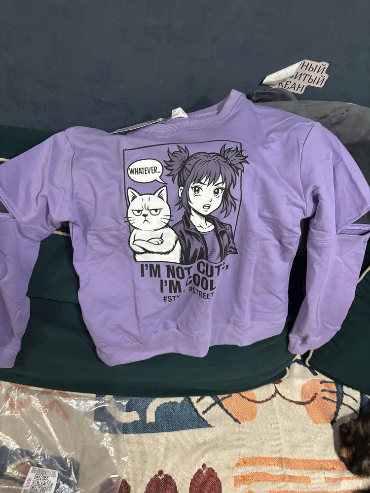В этой прекрасной и модной толстовке Вашему ребёнку как никогда будет комфортно, а прогулки станут полными увлекательных открытий. Эластичный нижний край, горловина и манжеты делают толстовку максимально удобной, а мягкий хлопковый материал дарит тепло и уют. Горловина обрабатывается под обтачку. Толстовку украшает оригинальный принт в стиле Аниме. На рукавах толстовки обрабатывается оригинальный элемент в виде разреза в области логтя.